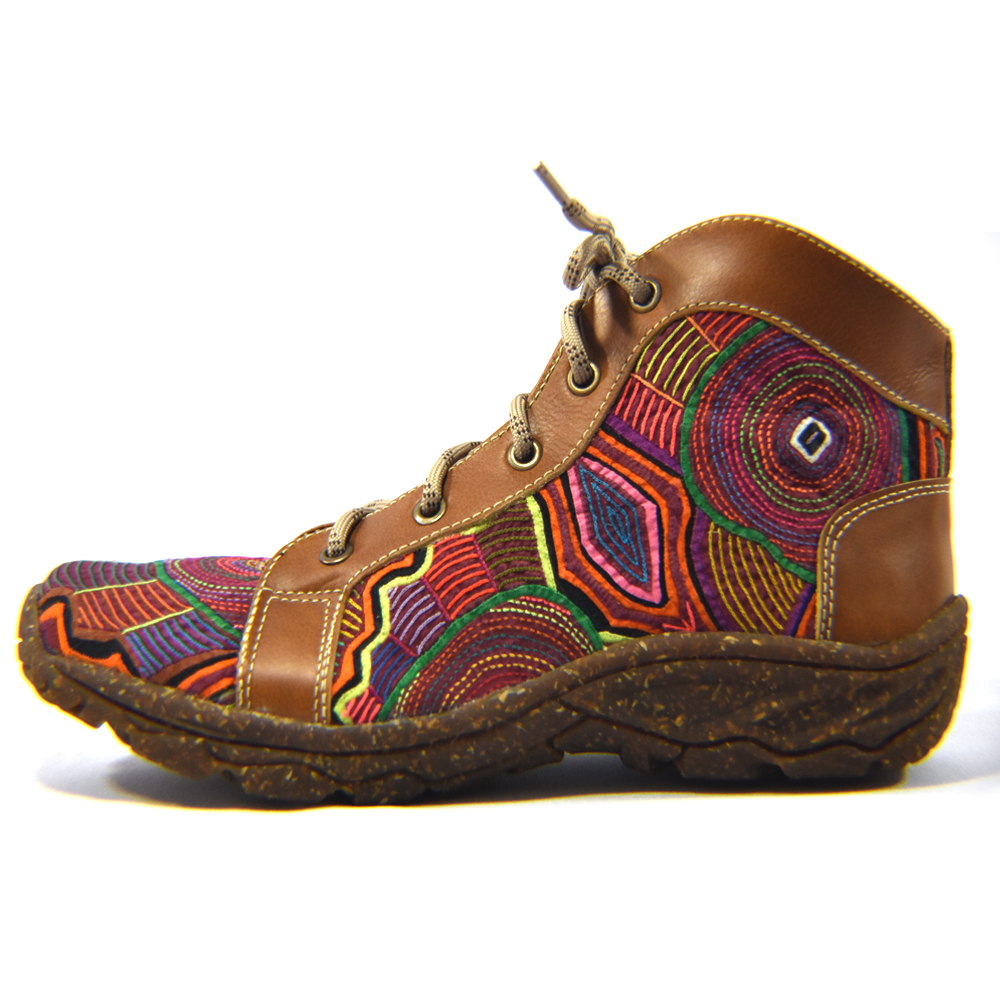 - Every pair of shoes or boots is unique, one of a kind, like the Kuna women who made the "Mola" from which the artisans have made your shoes. For that reason, colors, patterns, and the figures are completely different in each pair, even each shoe.